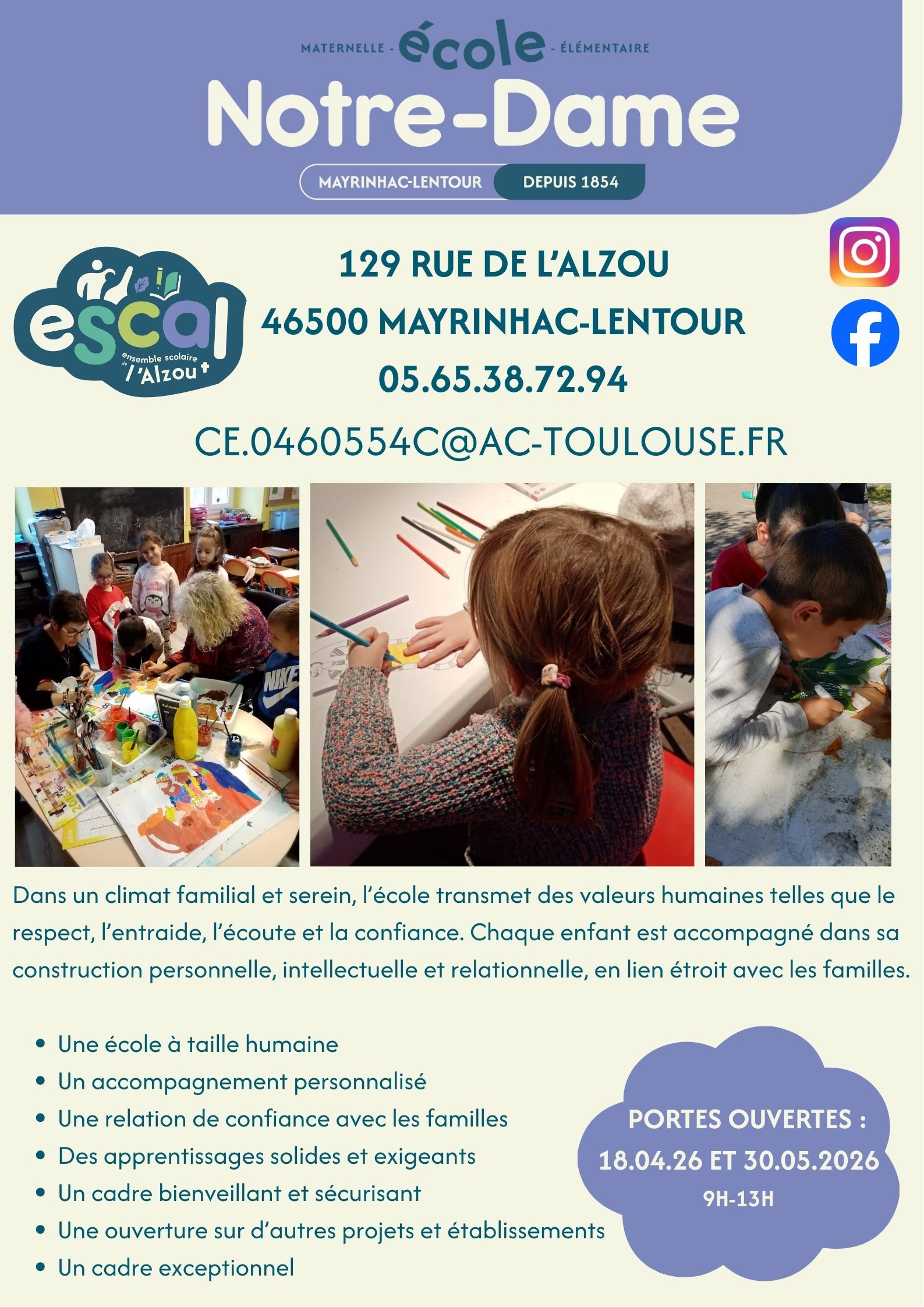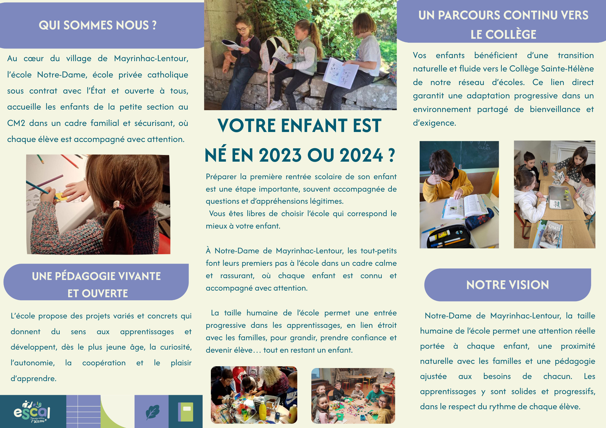 À l’École Notre Dame de Mayrinhac-Lentour, nous cultivons l’excellence avec le sourire, en accompagnant chaque enfant pour qu’il grandisse en confiance et devienne un acteur éclairé et responsable de demain. 🌿🌍✨